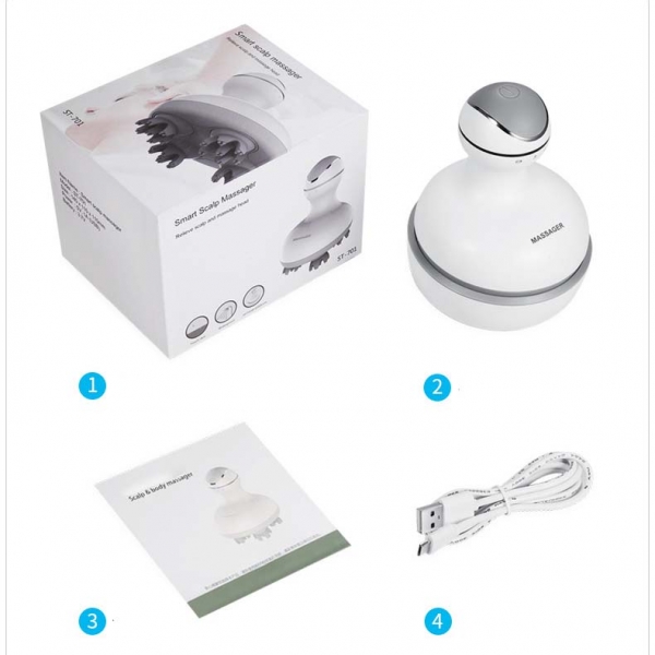 • 4 đầu massage: (28 gai silicon mềm) thư giãn da đầu