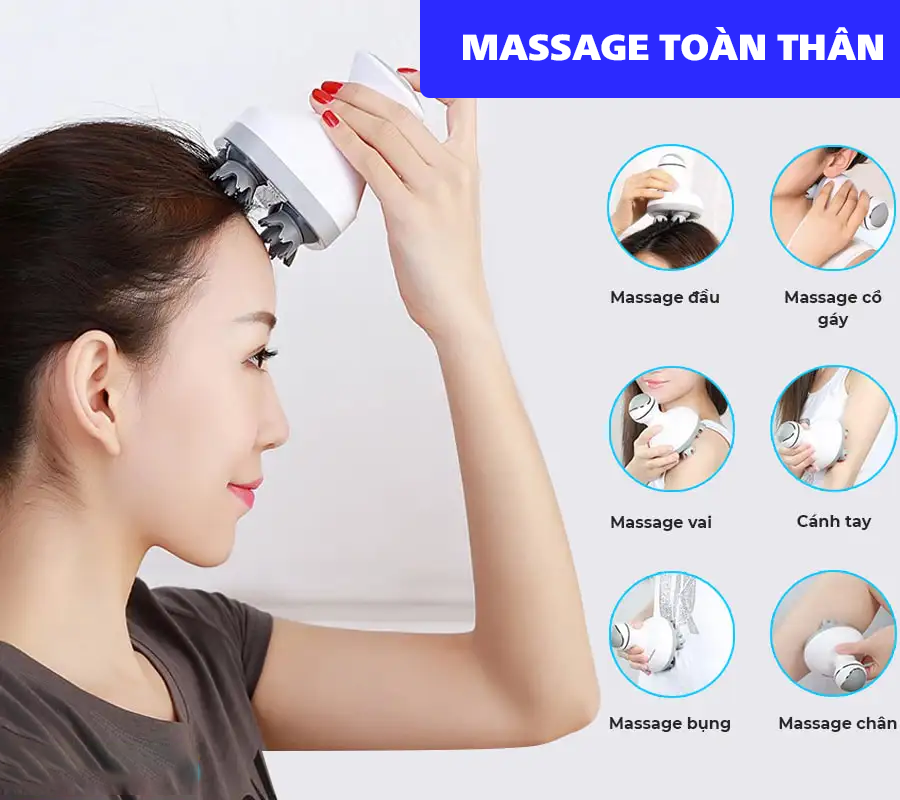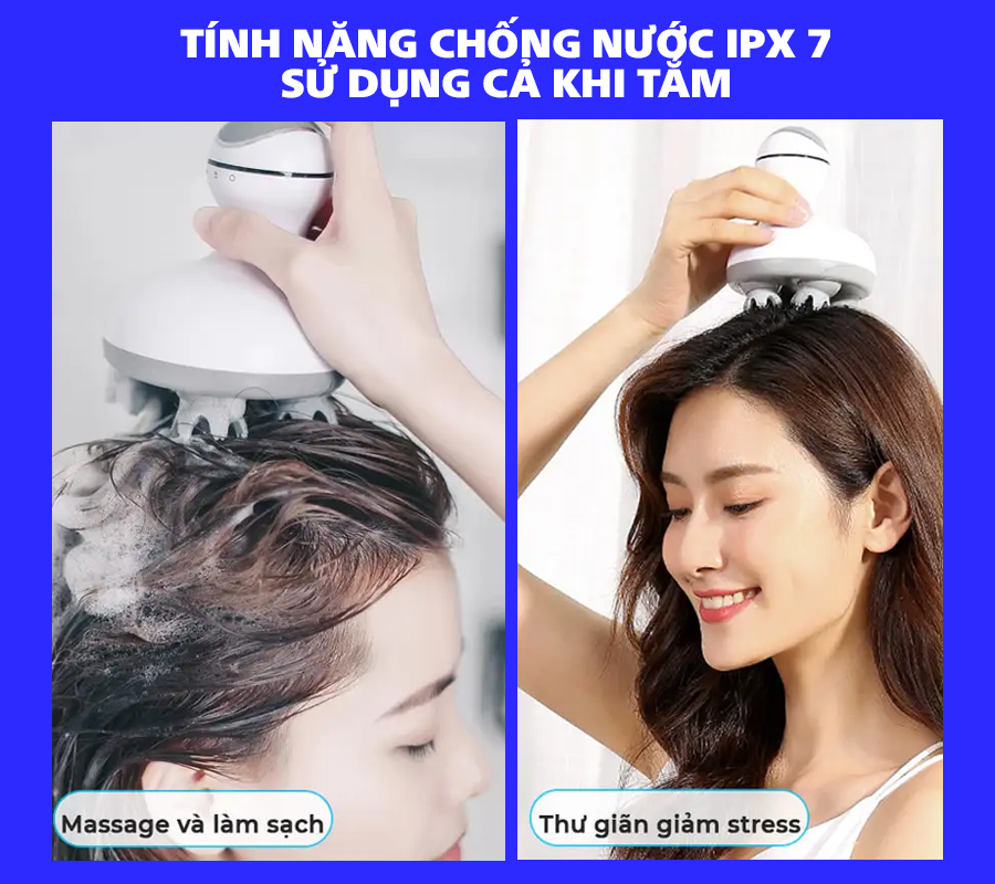 • 4 đầu massage: (28 gai silicon mềm) thư giãn da đầu